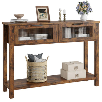 Garvee Mesa De Entrada Estilo Campestre Con 2 Cajones Y Estante Para Sala Y Pasillo 43.3x11.8x31.4 In Burlywood
