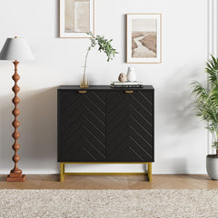 - Elegancia Distintiva: El patrón de espiga en las puertas, acentuado por elegantes tiradores dorados, añade profundidad visual y textura que eleva tu espacio. Este moderno gabinete buffet ofrece un aspecto refinado y de diseñador mientras se integra fácilmente con muchos estilos de decoración