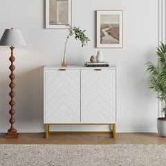 Garvee Aparador Moderno 80 cm con Puertas Chevron y Estante, Madera y Metal, Elegante para Comedor y Sala, Durable, Dorado