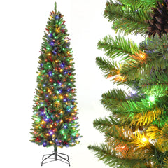 Garvee Árbol de Navidad 230cm con 350 Luces RGBW, PVC Resistente, Decoración Festiva Interior, Fácil Montaje, Blanco y Rojo
