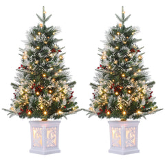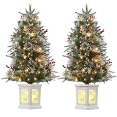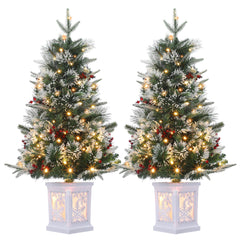 Garvee Árbol de Navidad Artificial 3 Pies con 78 Luces LED, Base con Reno, Ramas Nevadas, Temporizador Incorporado, Decoración para Hogar y Oficina, Blanco y Rojo