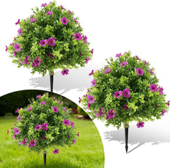 - [Fácil instalación con estacas de tierra incluidas] Cada juego incluye dos árboles de boj en forma de bola preensamblados (50 cm de ancho x 60 cm de alto) con estacas de tierra resistentes. Simplemente introdúzcalos en el suelo, macetas o parterres para una decoración instantánea, sin necesidad de herramientas ni configuraciones complejas.