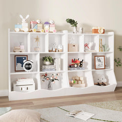 - 【Diseño seguro y amigable para niños】Diseñado pensando en los niños, con medidas de 36"L x 15.4"W x 42.5"H. El armario de almacenamiento para juguetes tiene la altura perfecta para que los más pequeños accedan fácilmente a sus libros y juguetes favoritos. El zócalo ondulado y las tablas de madera redondeadas no solo añaden un estilo único, sino que también proporcionan un ambiente seguro y cómodo para que los niños jueguen y exploren.