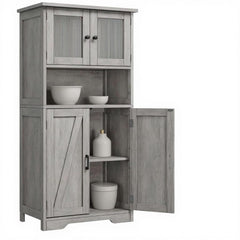 - Diseño versátil rústico: Realza la estética de tu hogar con este mueble de baño de hermosa factura. Con elegantes puertas de cristal y un encantador panel de estilo granero, complementa a la perfección cualquier estilo de decoración, ya sea en el baño, la sala, la cocina o el comedor.