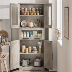 Garvee Armario Alto 170 cm Madera MDF Puerta Vidrio Templado Para Baño Cocina Diseño Compacto Blanco