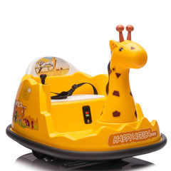 Garvee Autoscooter 6V, Rotación 360°, Luces LED, Control Remoto, Diseño Jirafa, Seguridad 5 Puntos, Batería, 2-5 años, Interior y Exterior, Amarillo