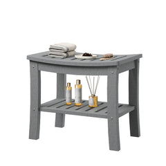 Garvee Banco De Ducha HDPE Con Estante De Almacenaje Resistente Al Agua Para Baño Y Bañera Diseño Ergonómico Madera Natural