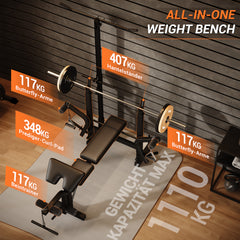 Garvee Banco de Pesas Ajustable 4 en 1 para Gimnasio en Casa, Plegable, 408 kg, Negro