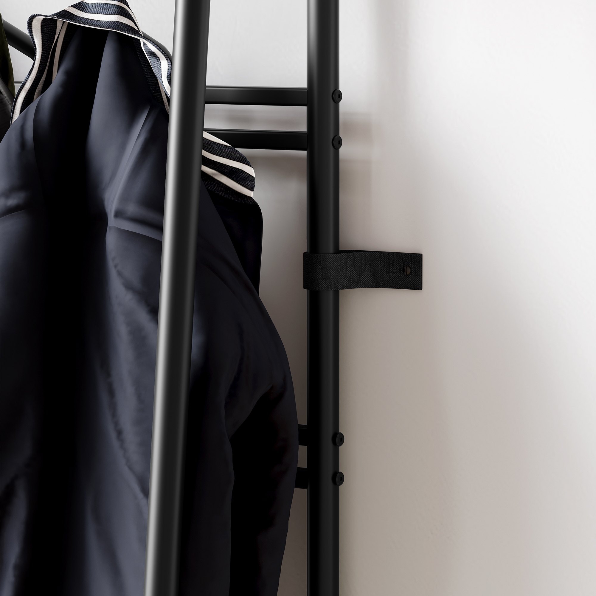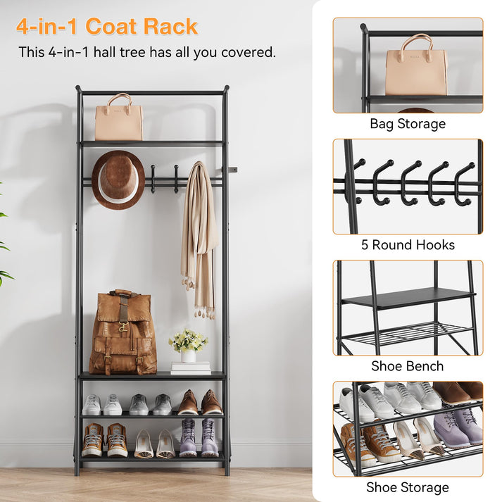 Garvee Perchero 4 en 1 Banco Zapatero MDF y Madera 5 Ganchos C Simples 60cm Ancho Estructura Resistente Gris y Negro