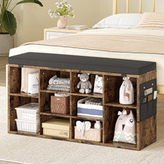 Garvee Banco Para Zapatos Con Estantes Ajustables, Cojín De Cuero, Madera Duradera, Vintage Elegante, 10 Cubículos, Entrada Y Pasillo, Marrón