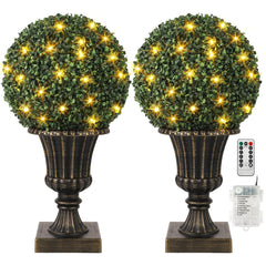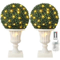 Garvee Bolas Artificiales De Boj 40cm Luces 8 Modos Ajustables Base Blanca UV-Resistente Jardín Balcón Verde Natural