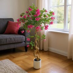 - 【Planta realista】: Este árbol artificial de buganvilla de 120 cm/150 cm/180 cm de altura, hecho de seda de alta calidad, es suave, duradero y estable, y resiste daños o deformaciones. Este árbol artificial de buganvilla con forma única tiene un tronco rodeado de enredaderas cubiertas de flores rosas brillantes y realistas. Aporta vitalidad duradera y alegría visual a cualquier espacio.