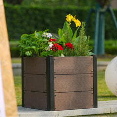 - 5. Diseño Versátil para Realzar Cualquier Espacio Exterior: Ya sea que cultives en un amplio patio trasero, un acogedor patio o un balcón urbano soleado, este macetero es la solución versátil perfecta. Su estética elegante con apariencia de madera mejora sin esfuerzo cualquier decoración exterior, permitiéndote transformar fácilmente rincones infrautilizados en parterres productivos de verduras o impresionantes exhibiciones florales. Lleva vida, color y la alegría de los productos cultivados en casa directamente a tu puerta, maximizando el potencial de tu espacio único.