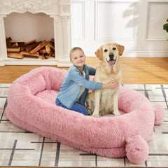 - 【Suave y cómodo】La cama para perros para personas y mascotas está hecha de tela biónica de pelo corto, con espuma de alta densidad y manta. El cierre circular elevado de 8 pulgadas está dividido científicamente para brindarte un soporte integral, ofreciendo una sensación suave y cómoda como las nubes, para que personas y mascotas puedan disfrutar de un sueño tranquilo juntos.