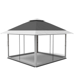 Garvee Carpa Gazebo Plegable 366x366 cm con Alero Retráctil de un Solo Toque y Mosquitera Estructura de Acero Resistente Altura Ajustable Impermeable Eventos al Aire Libre Gris Oscuro y Gris Claro
