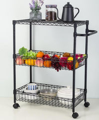 Garvee Carrito Rodante de 3 Niveles con Estantes Ajustables y Ruedas Giratorias para Cocina y Oficina, Acero Carbono, Versátil y Durable