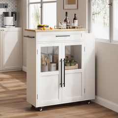 - Robusto y móvil: Construcción premium de MDF que soporta 50 libras; 4 ruedas con bloqueo (2 giratorias, 2 fijas) que se deslizan suavemente en pisos duros mientras permanecen firmes durante la preparación de comidas.
