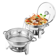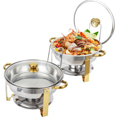 Garvee Set de 4 Chafing Dishes Buffet de Acero Inoxidable 5QT, Tapa de Vidrio y Soporte, 42x41x28cm, Bordes de Acero para Eventos y Bodas