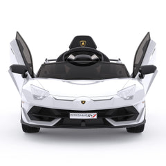 - Bajo licencia oficial de Lamborghini: el coche eléctrico para niños de 12V impresiona con sus puertas dobles de apertura hidráulica, sus dos potentes motores y su amplio asiento equipado con cinturón de seguridad. El vehículo eléctrico ideal para los niños, ofreciéndoles el placer de conducir un auténtico Lamborghini.