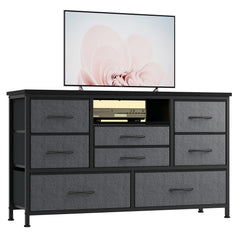 - [Gran Mueble de Almacenamiento] La cómoda está diseñada de manera única con una superficie de escritorio de 34 cm de profundidad y 120 cm de ancho y cajones profundos para organizar ropa, mantas, bufandas, calcetines y otros accesorios. La superficie de madera es más estable y puede usarse como mueble para TV.