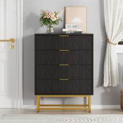 Garvee Cómoda Negra de 4 Cajones con Tiradores Dorados para Dormitorio y Sala, Moderna y Estable, MDF Resistente, Patas Metálicas, Antivuelco
