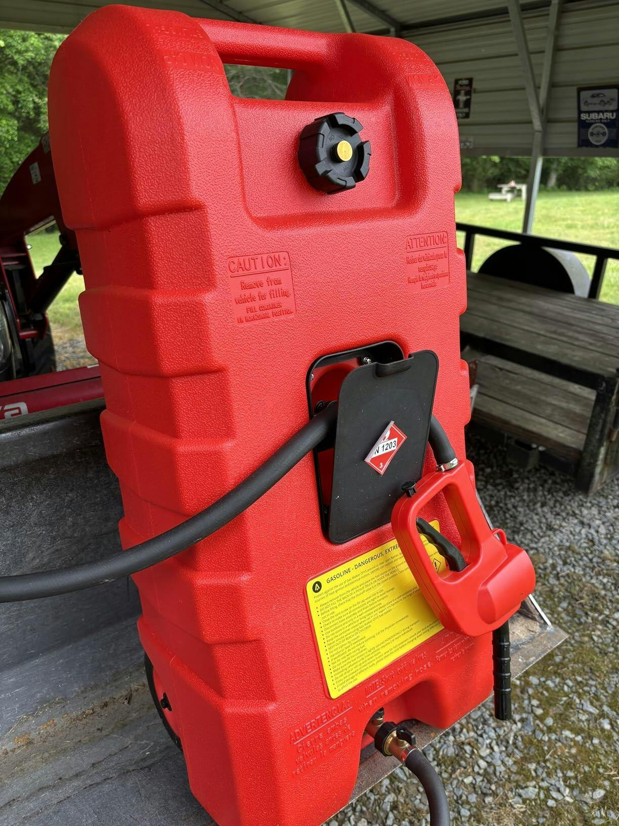 Garvee Contenedor de Gasolina 56.78L (15GAL) HDPE Antifugas Bomba Manual Manguera 3.05m Ruedas Incluidas Resistente Jardines, Vehículos Color Rojo