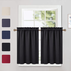 - Oscurecimiento para todas las ventanas pequeñas: paneles cortos de cortina de 2 piezas vienen con una bolsa estándar para barra, que se adapta fácilmente a cualquier ventana pequeña sin adaptadores adicionales.