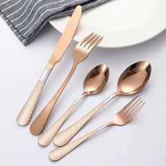 Garvee Juego De Cubiertos 20 Piezas Para 4 Personas Acero Inoxidable Mango A Cuadros Hogar Restaurante Plata