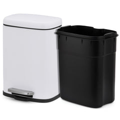 - 【Diseño delgado y compacto】El cubo de basura de perfil ultra estrecho de 11.8 pulgadas se adapta a rincones estrechos de la cocina o espacios de baño sin comprometer la capacidad de 5 L. El cubo interior extraíble con asas ergonómicas facilita la limpieza, mientras que los anillos de bloqueo para forros aseguran bolsas estándar/compostables.