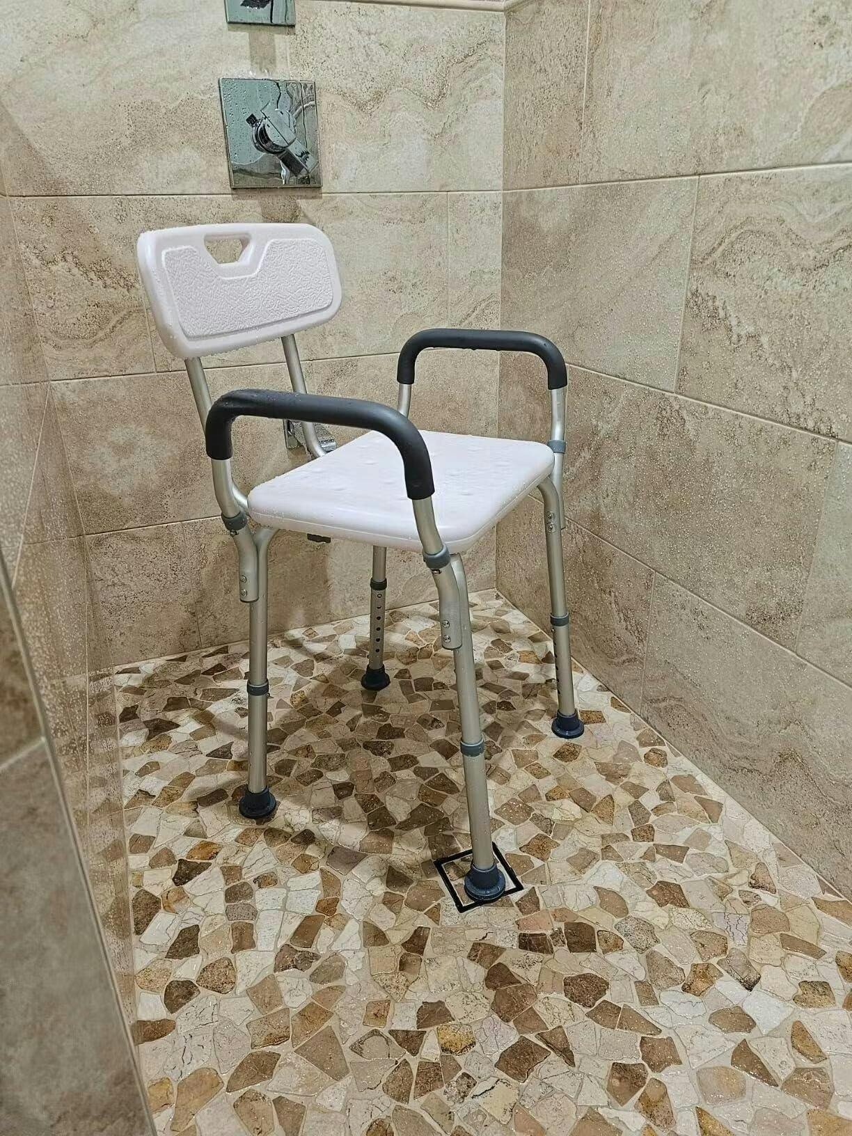 Garvee Asiento de Ducha U con Respaldo y Reposabrazos Ajustable Aluminio Plastic Antideslizante Ligero Robusto Manual en Idioma Local Ancianos, Personas con Movilidad Reducida Baños, Espacios Residenciales Plateado