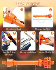 Garvee eje PTO 3.5 cm 6 Estrías Ajustable 109-145 cm Acero Duradero Naranja para Brush Hog y Cortacésped Serie 4
