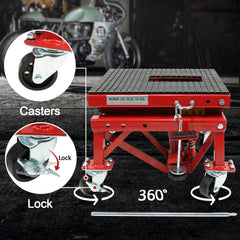 Garvee Elevador Hidráulico para Motocicleta 159 kg, Acero con Recubrimiento en Polvo, Ajustable 33-86 cm, Ruedas Portátiles, Taller y Garaje