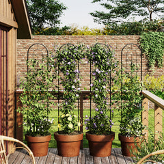 - Enrejado decorativo rústico de arco de hierro: Más allá de la funcionalidad, estos arcos de hierro sirven como una decoración exterior llamativa. Déjalos desnudos en invierno para añadir interés arquitectónico, o deja que las plantas trepadoras se entrelacen por las barras para un aspecto exuberante y romántico en primavera y verano. Son perfectos para mejorar el atractivo exterior, enmarcar caminos o añadir carácter a jardines en macetas en el patio.