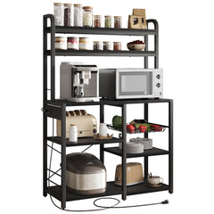 - Amplio espacio de almacenamiento: Con 5 niveles espaciosos, este estante para panadero ofrece mucho espacio para organizar tus esenciales de cocina. Los dos niveles superiores son perfectos para especias y condimentos, mientras que la repisa del medio y la esquina inferior izquierda más grande pueden sostener electrodomésticos grandes. La cesta de alambre proporciona una gran ventilación, ideal para almacenar frutas, verduras o secar platos. El diseño abierto mantiene todo visible y al alcance de la mano. Tamaño: 35.41" L x 15.71" A x 59.12" H.