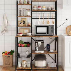 Garvee Estante Panadero Enchufe 7 Niveles Cesta Alambre Soporte Microondas MDF Acero Retro Marrón Cocina 90x40x178cm