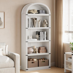 - Espacio de Almacenamiento Generoso: La estantería arqueada cuenta con cinco amplios estantes que ofrecen espacio suficiente, perfecto para exhibir no solo libros sino también decoraciones apreciadas, plantas y coleccionables, mide 71.65”x 29.92”x 11.88” (Al x L x An) con 12.44” entre cada nivel, lo que maximiza el espacio vertical para todas sus necesidades de almacenamiento y exhibición.