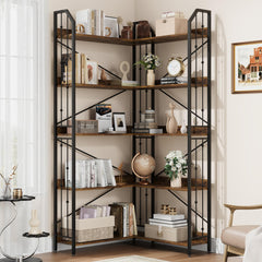 Garvee Estantería Esquinera Industrial 5 Niveles 183 cm MDF Metal Antivuelco para Sala o Dormitorio Negro