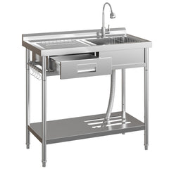 Garvee Fregadero de Acero Inoxidable 201 Serie 2.0, 100.33×49.53×97.79cm, Cubeta Izquierda con Plataforma Derecha, Estante y Cajón Independiente, con Grifo, para Cocina y Lavandería