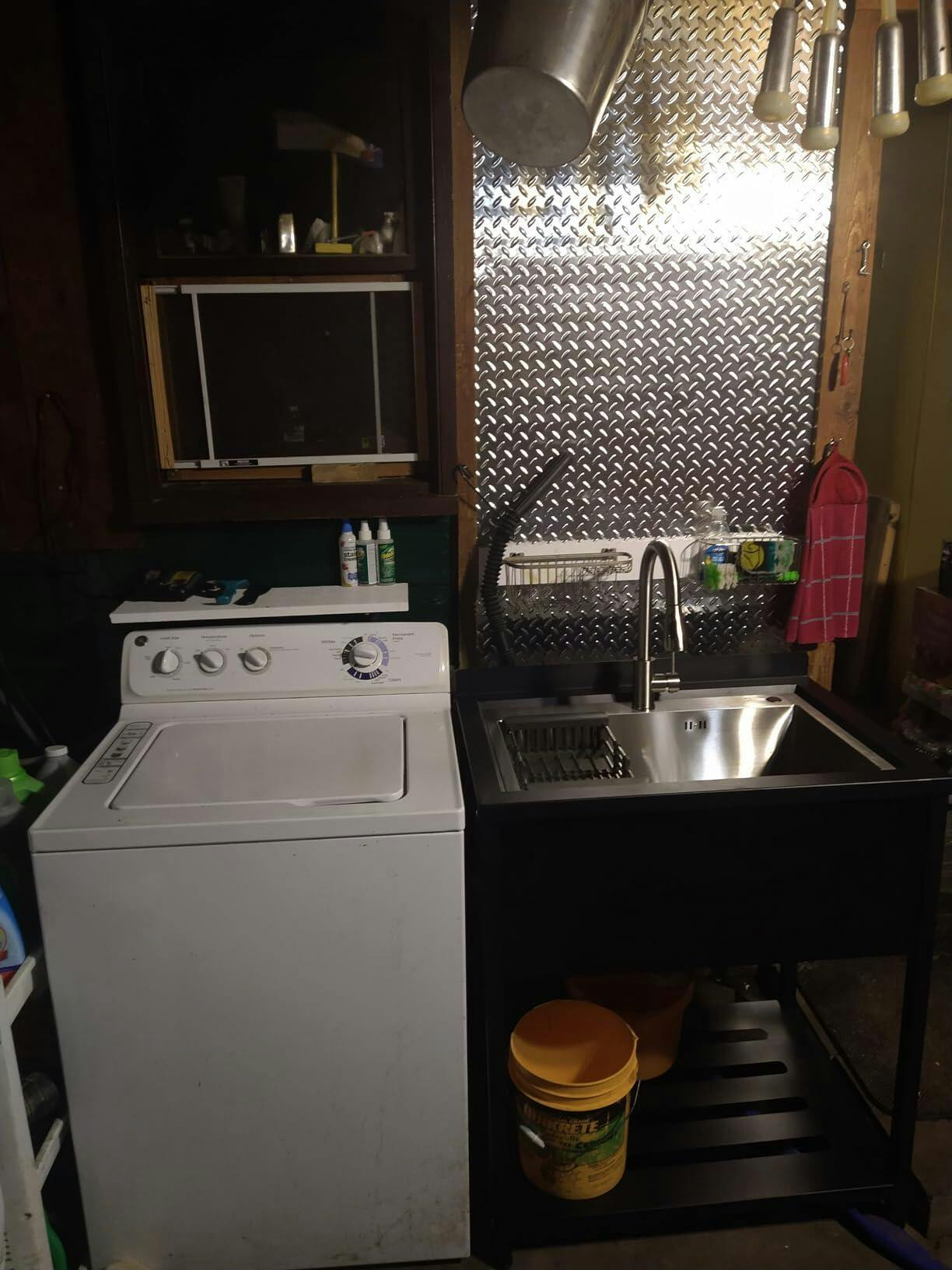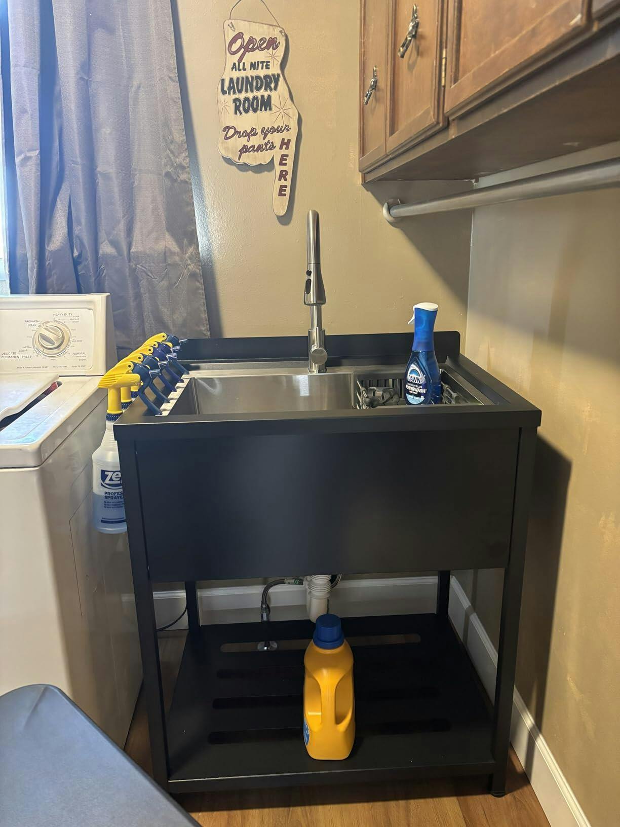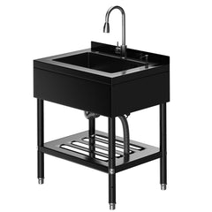 Garvee Fregadero De Acero Inoxidable 304 Con Grifo Giratorio 360°, Acabado Negro, Estante Inferior Para Garaje Y Lavandería