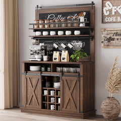 - PUERTAS CORREDIZAS ESTILO GRANERO: Este gabinete de almacenamiento de cocina está equipado con puertas corredizas estilo granero para ahorrar espacio, mientras que los gabinetes interiores ofrecen opciones de almacenamiento versátiles. Las amplias características de almacenamiento aseguran que todos los elementos esenciales para su bar de café estén ordenadamente organizados, permitiéndole disfrutar al máximo de sus momentos de ocio.