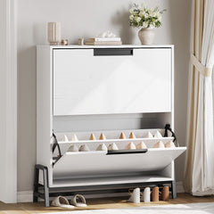 - Armario para zapatos en la entrada: El armario oculto para almacenamiento de zapatos con 2 puertas abatibles, elegante y sencillo, ofrece un acabado limpio y hermoso y se ve genial en muchos estilos de hogar diferentes. Perfecto para colocar en la entrada, pasillo, sala de estar o porche, proporciona un aspecto ordenado en tu hogar y ahorra espacio.