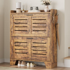 - Diseño fresco y elegante con persianas: Las ranuras de ventilación ocultas previenen olores y acumulación de humedad, manteniendo los zapatos frescos. Combinando el encanto rústico con líneas modernas, este armario oculto para zapatos eleva la entrada, el cuarto de barro o los pasillos. Un organizador funcional que también sirve como un acento decorativo elegante para estilos contemporáneos, rústicos o industriales.