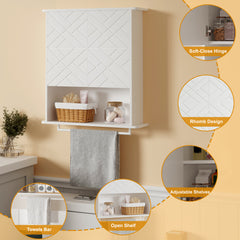 Garvee Gabinete De Medicinas De Madera Con Dos Puertas, Estante Ajustable Y Barra Para Toallas, Armario De Pared 3 Niveles Para Baño Y Cocina, Blanco, Versátil