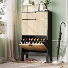 - Amplio armario para almacenamiento de zapatos – ¿Cansado de los zapatos esparcidos? Este armario cuenta con 2 cajones abatibles con almacenamiento de doble capa, que pueden contener de 8 a 12 pares con facilidad. La superficie superior y el cajón adicional son perfectos para tus llaves, cartera y más: ¡todo se mantiene en un solo lugar!