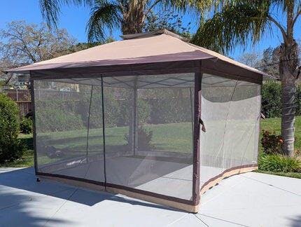 Cuatro paredes de mosquitero con cremallera, fáciles de instalar o retirar. Ideal para patios, piscinas o espacios al aire libre, manteniendo insectos alejados mientras disfrutas del fresco exterior.