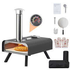 - Opciones flexibles de combustible: Cocina con tu fuente de combustible preferida. Ya sea que uses pellets de madera, astillas de madera o carbón, este horno de pizza de leña te permite experimentar con sabores para una experiencia única de cocina al aire libre