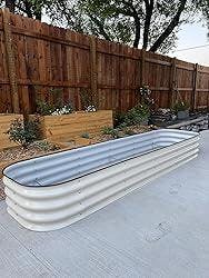 Garvee Jardineras Ovaladas Elevadas 183x91x46cm Acero Galvanizado Blanco para Jardines y Patios