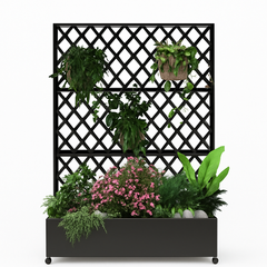Actúa como bancal elevado, enrejado para trepadoras y pantalla de privacidad. Ideal para espacios pequeños como patios o balcones, maximiza el cultivo vertical y añade verdor con estilo a tu exterior.