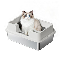 - 【Metal específico para gatos】 Fabricado con acero inoxidable de calidad 304, inodoro y más seguro que los modelos tradicionales de plástico. La superficie moldeada uniformemente previene grietas y la proliferación de bacterias, es duradera y antiadherente. La base lisa evita que la arena se adhiera, protege las patas de la suciedad y puede contener hasta 28 L de arena, ideal para hogares con múltiples gatos.