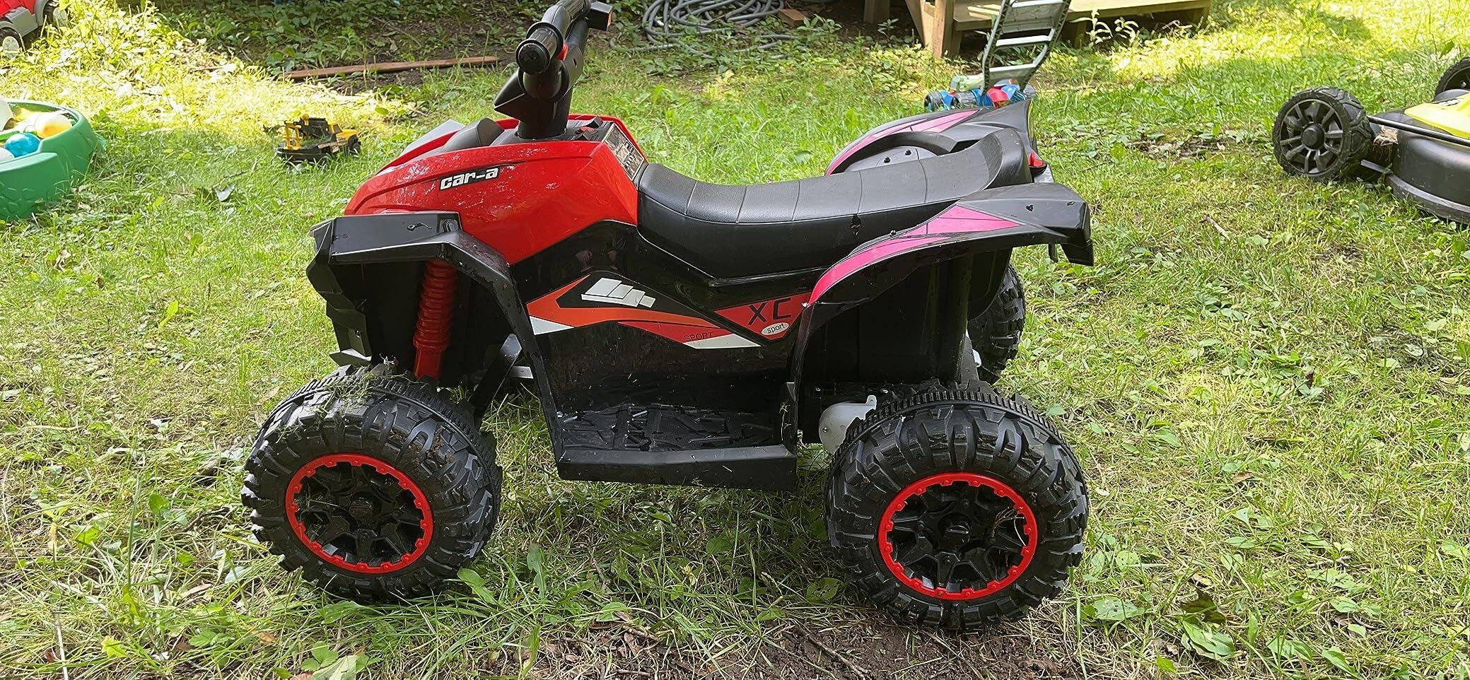 Garvee Quad Eléctrico 12V, LED y Música, Control Doble, Ruedas 4x4 EVA, 3-6 años, Interior y Exterior, Rojo